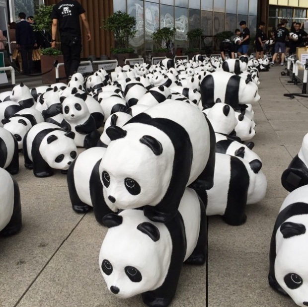 전시는 미리 예고된 장소에 판다 1600마리가 갑자기 나타났다가 하루 만에 사라지는 '플래시몹' 방식이다. 27일 부산시민공원, 28일에는 부산사직야구장에 나타난다.