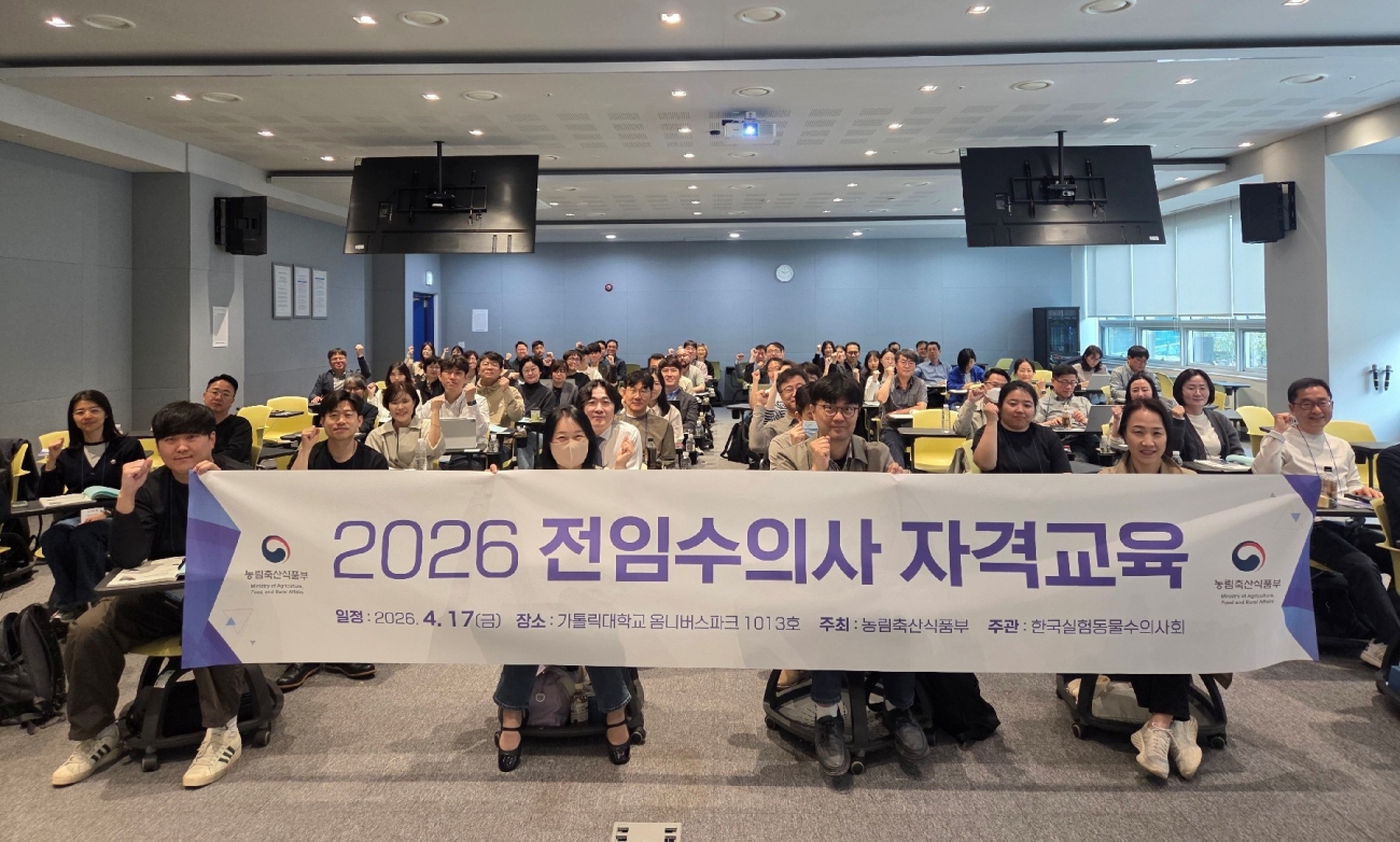 [노트펫] 농림축산식품부(장관 송미령, 이하 ‘농식품부’)는 실험동물의 건강과 복지를 전담하는 수의사들을 대상으로 ‘2026년도 전임수의사 자격 교육’을 17일, 가톨릭대학교에서 실시했다고 밝혔다.