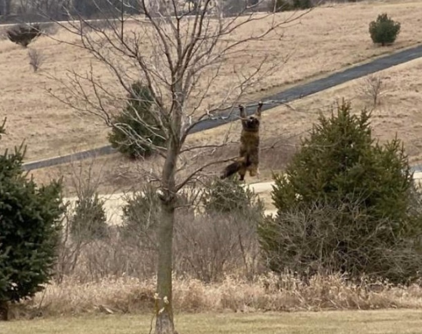 온라인 미디어 보어드판다는 집을 뛰쳐나가 나무에 매달린 고양이의 사진을 공개했다.