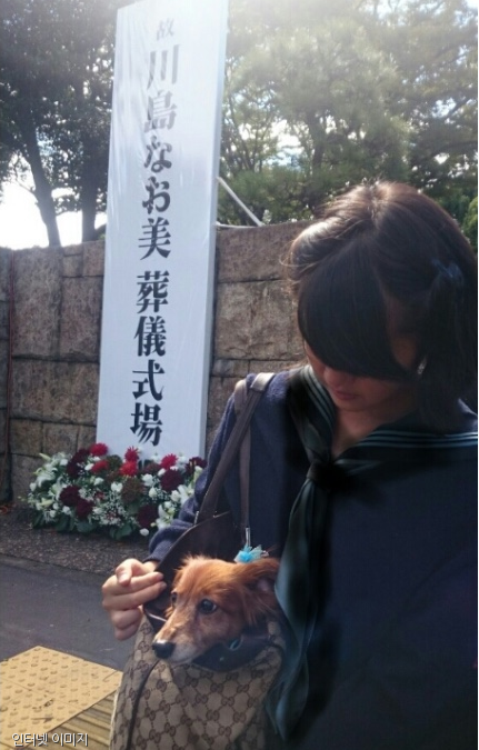 카와시마 나오미의 장례식에 온 반려견 코코넛.