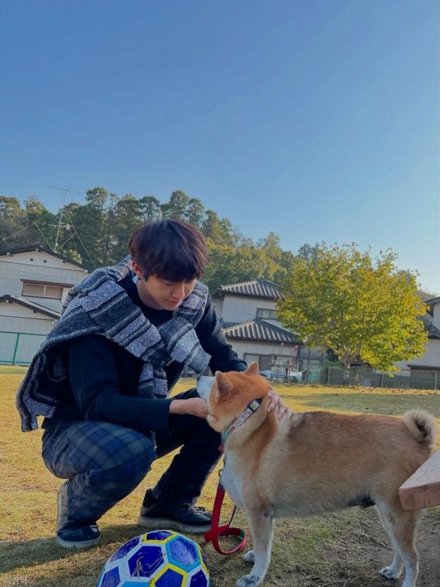 공개된 사진 속에서 광희는 강아지와 잔디밭에서 공놀이를 즐기고 있다.