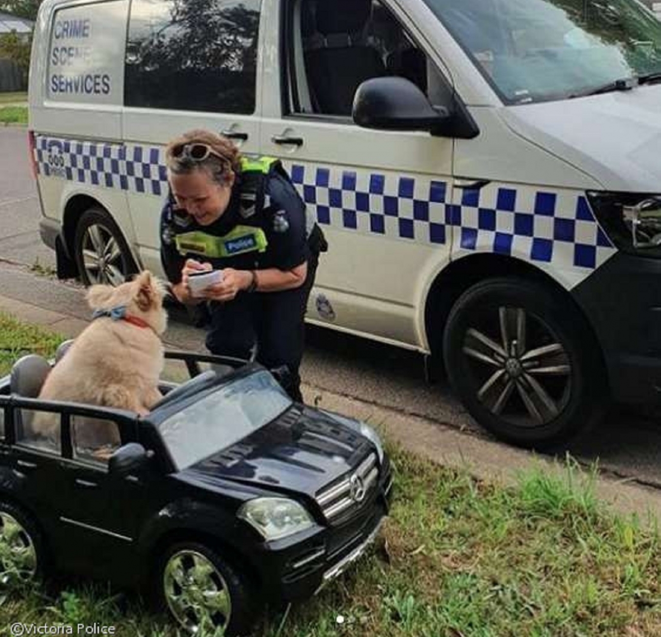 미국동물매체 더도도는 모형 자동차를 타고 가다 경찰과 만난 강아지의 사연을 소개했다.