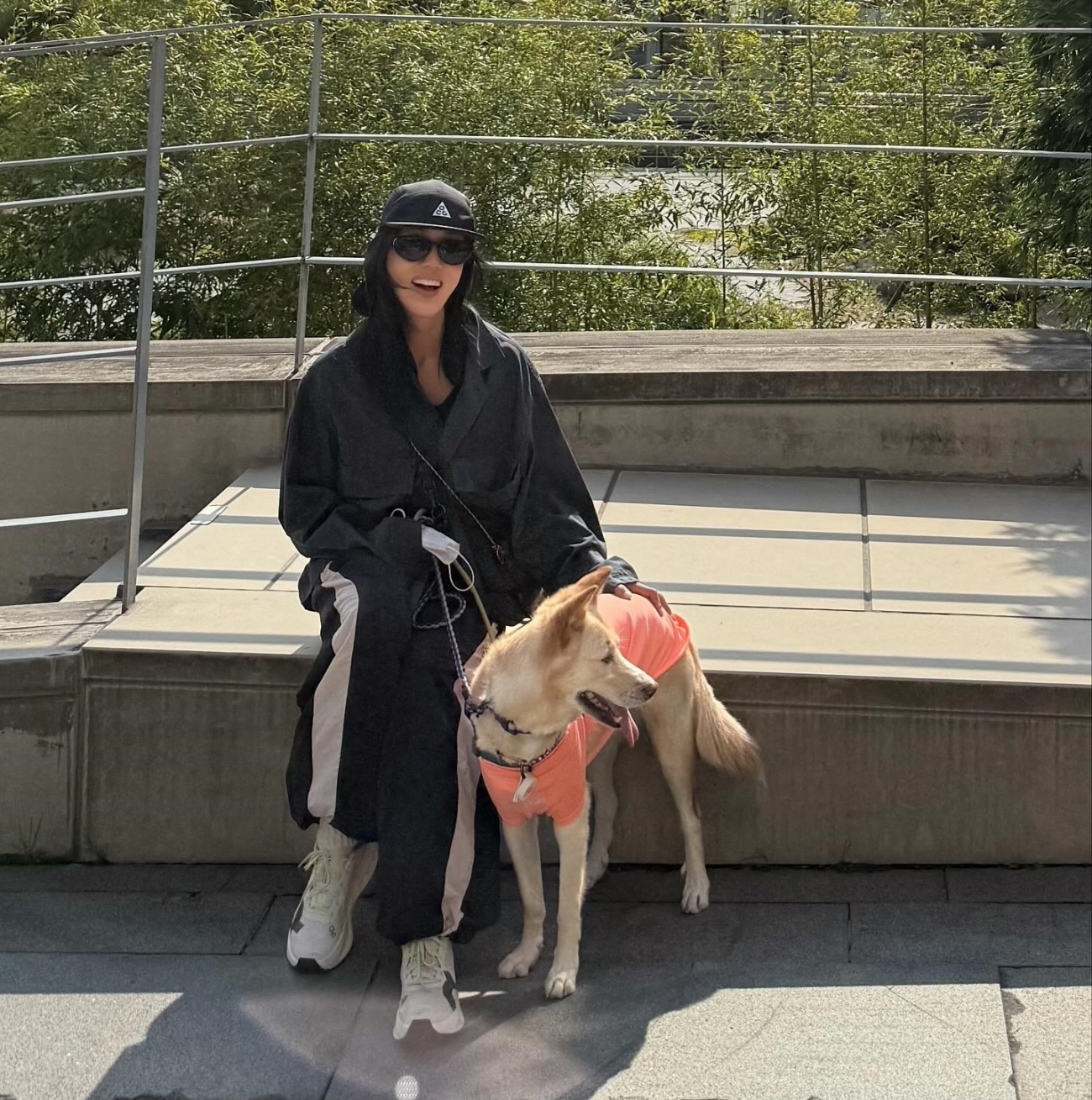 공개된 사진 속에서 엄정화는 둘만의 여유로운 산책을 즐기고 있다.