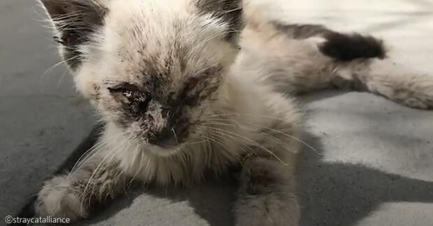 녀석의 온몸은 벼룩이 들끓고 있었고, 영양부족과 탈수증세를 보였으며, 심한 호흡기 감염 증상을 보였다.