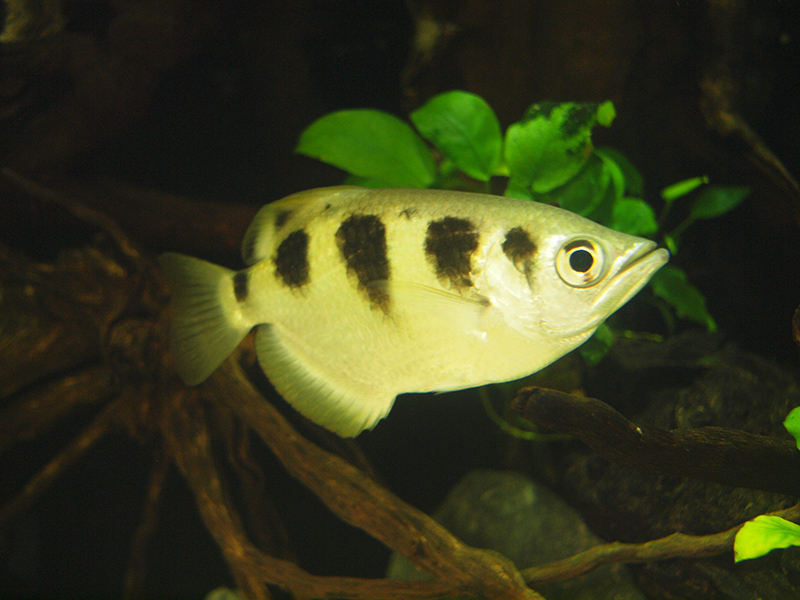 몸을 가로지르는 세로줄이 있고, 크기는 평균 20센티미터 정도 한다. 몸은 납짝하나, 입이 뾰족한 게 특징이다. 물 밖의 2미터 거리에 있는 곤충도 물총을 쏘아 잡아먹는 능력이 있다. [자료제공 : 국립생태원]